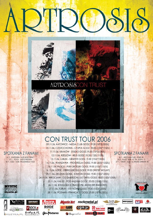 Dokładnie za 10 dni, czyli 9 listopada wystartuje trasa koncertowa ARTROSIS - "Con Trust Tour 2006"