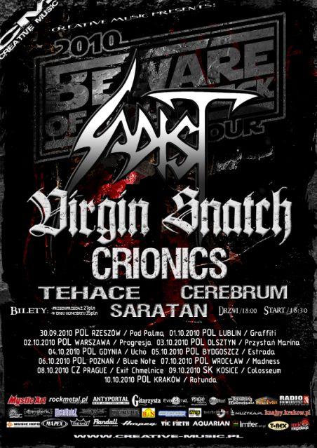 SADIST, VIRGIN SNATCH, CRIONICS,& TEHACE, CEREBRUM i SARATAN. Cena biletów na koncerty odbywające się na terenie naszego kraju w przedsprzedaży wynosi 27 zł. Można je nabyć we wszystkich klubach, w których odbędą się koncerty, a także w wymienionych poniżej sklepach muzycznych:
