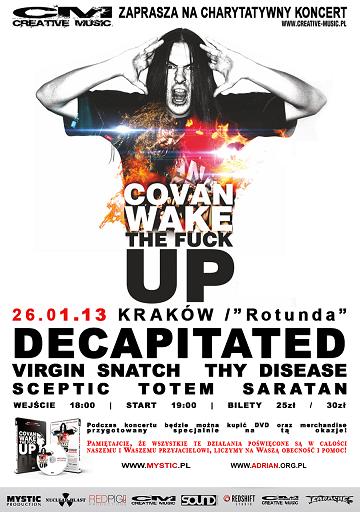 Koncert charytatywny dla wokalisty Decapitated Adriana Covana Kowanka zbliża się wielkimi krokami! Już za dwa tygodnie 26 stycznia 2013 w krakowskiej Rotundzie odbędzie się niezwykła impreza, podczas której zarówno zespoły jak i publiczność będą pomagać Covanowi, aby wrócił do zdrowia po ciężkim wypadku.