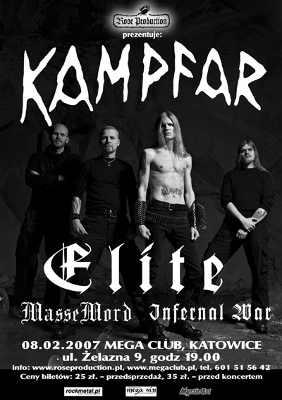 8 lutego w katowickim Mega Clubie odbędzie się koncert norweskiej grupy KAMPFAR. Jako support zagrają Elite, Infernal War i Massemord.