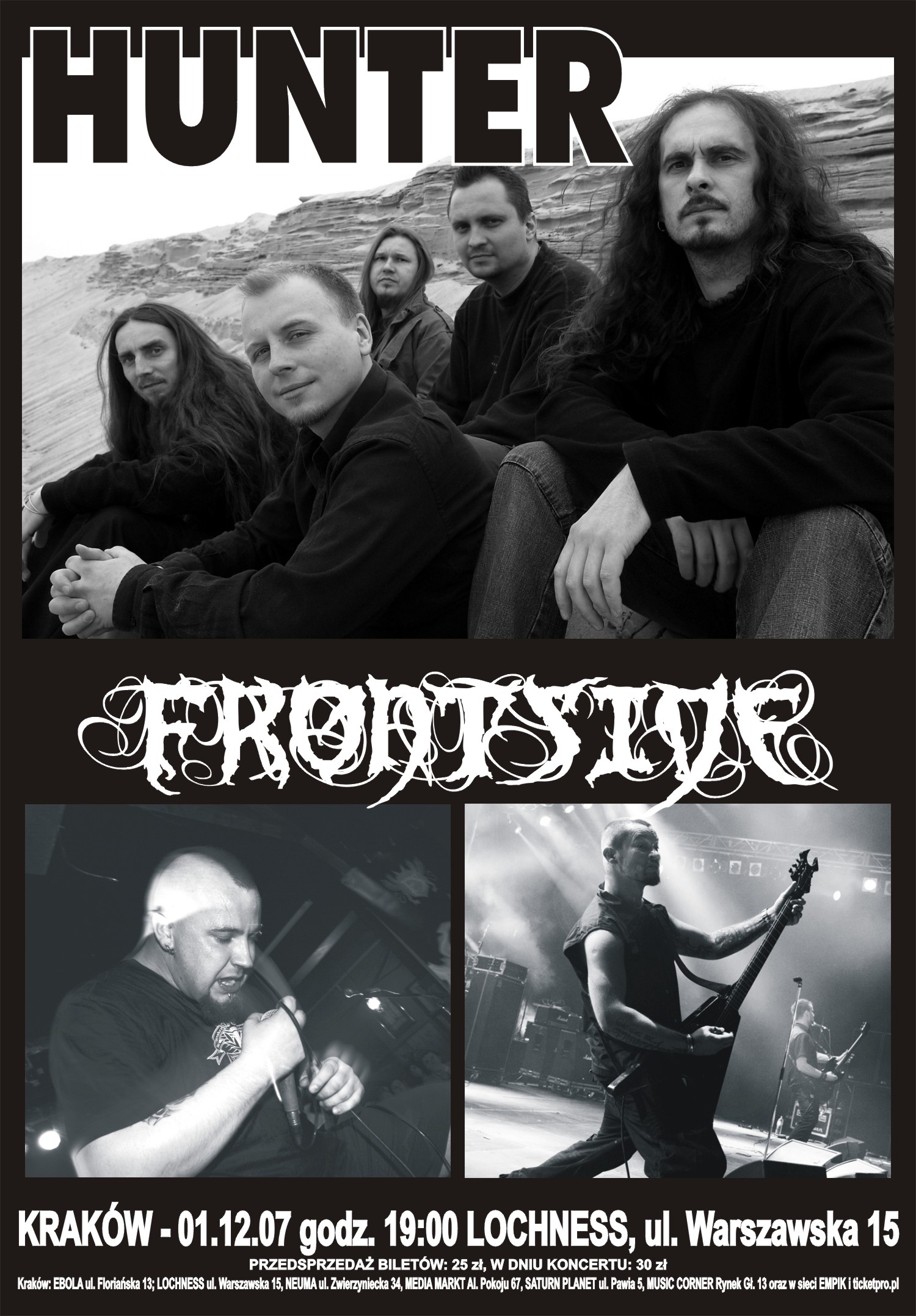 Grupę Hunter (i Jelonka, grającego repertuar z solowej płyty, której premiera w poniedziałek 3 grudnia) będzie można zobaczyć w następujących miejscach: