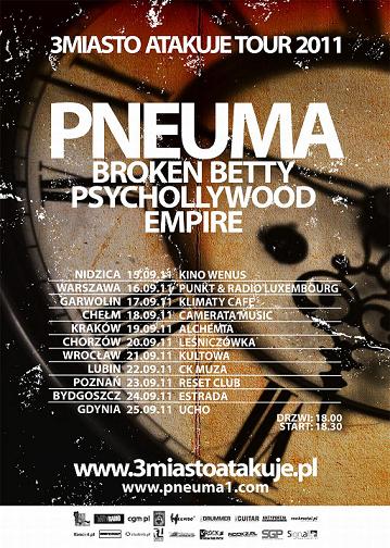 Już dzś startuje trasa koncertowa „3Miasto Atakuje Tour 2011”. Pneuma w towarzystwie Broken Betty, Psychollywood i Empire odwiedzi 11 polskich miast !
