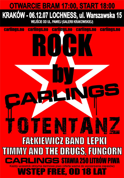 W Mikołajki, 6.12 w krakowskim klubie Loch Ness odbędzie się impreza Rock By Carlings, na której jako gwiazda wystąpi Totentanz.